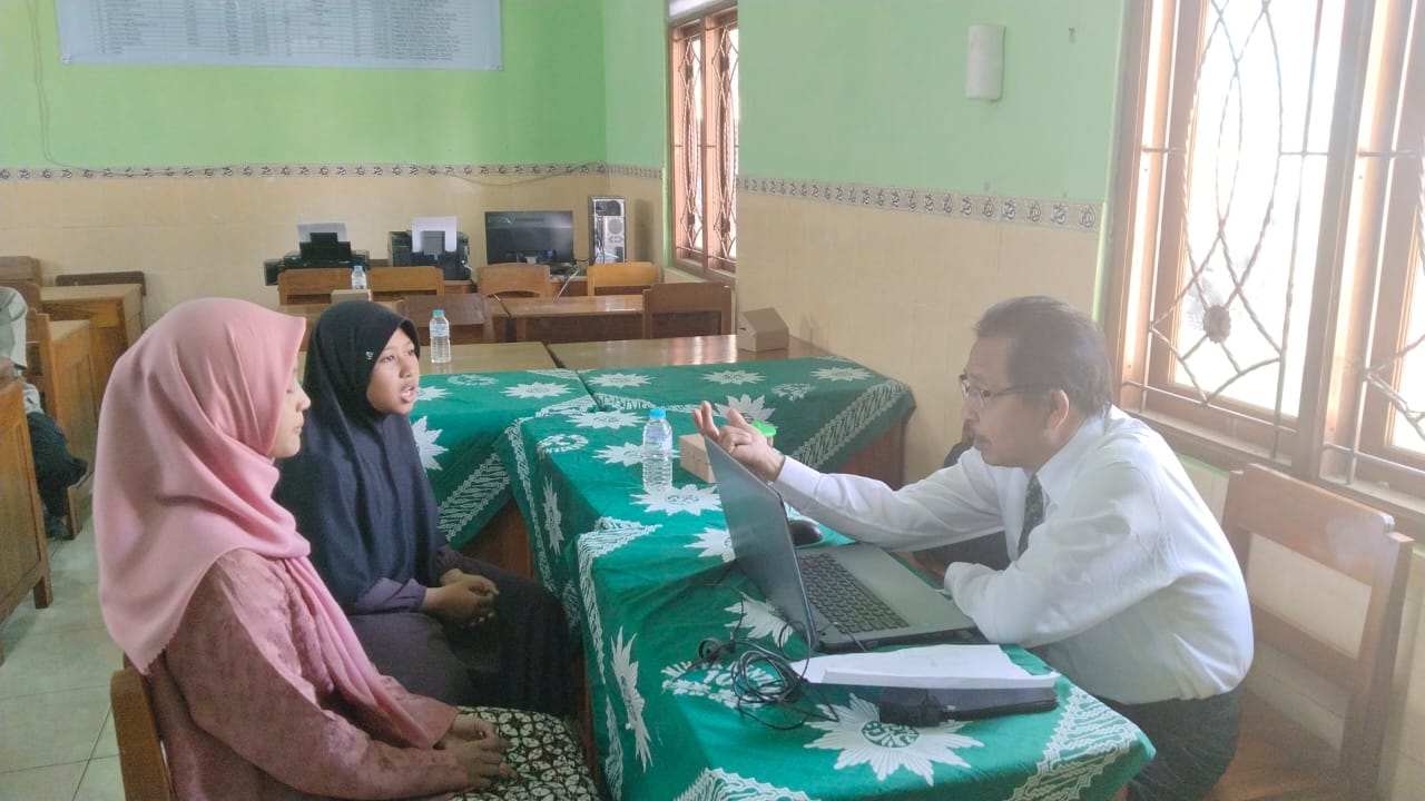 Sambutan selanjutnya disampaikan oleh Tim asesor dengan memperkenalkan pribadi masing-masing. Dalam sambutannya (Asessor 1) beliau menyampaikan bahwa saya ditugaskan dari BAN S/M Provinsi Jawa Tengah untuk mengklarifikasi berkas-berkas yang diunggah di Sispena serta menggali data dan informasi dengan cara wawancara dan observasi lapangan.