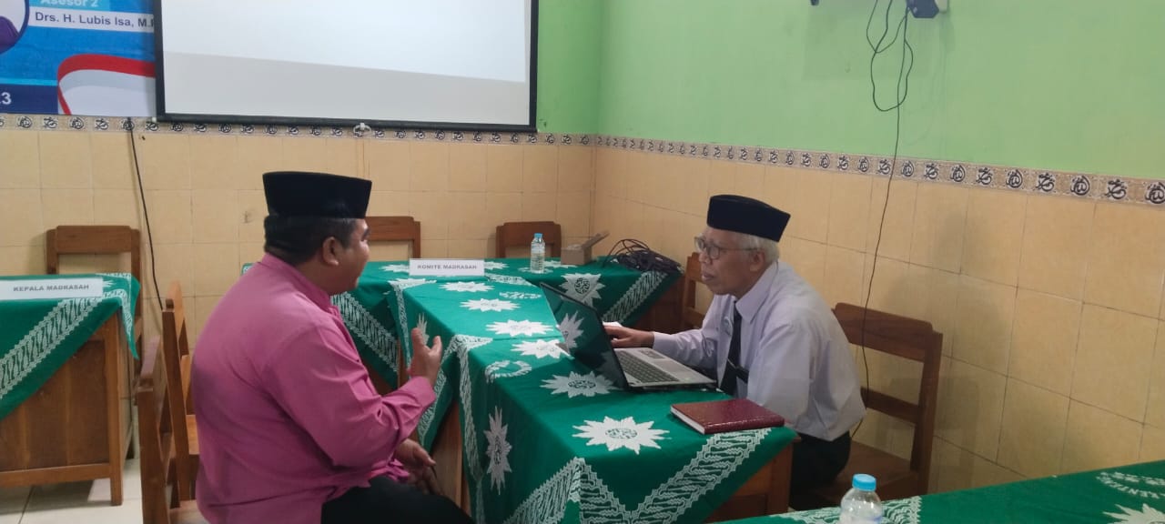 Pada hari pertama, tim asesor melakukan wawancara dengan Kepala Madrasah, pihak yayasan, Komite, perwakilan orang gua siswa, serta beberap siswa. Pada hari kedua, tim asesor melaksanakan observasi kelas dengan dua guru sebagai model pada dua kelas yang berbeda. Mereka melakukan penilaian apakah guru sudah menerapkan proses kegiatan belajar mengajar sesuai dengan perangkat pembelajaran yang telah dibuat. Selanjutnya melakukan pengamatan terkait sarana prasarana madrasah, verifikasi dan validasi data sarana pendukung lainnya, serta melakukan telaah dokumen keempat komponen yang terdapat dalam akreditasi.
