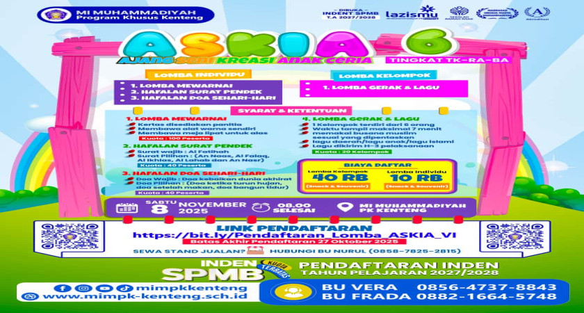 Pendaftaran lomba ✨ ASKIA "Ajang Kreasi Anak Islami" VI MIM PK KENTENG✨