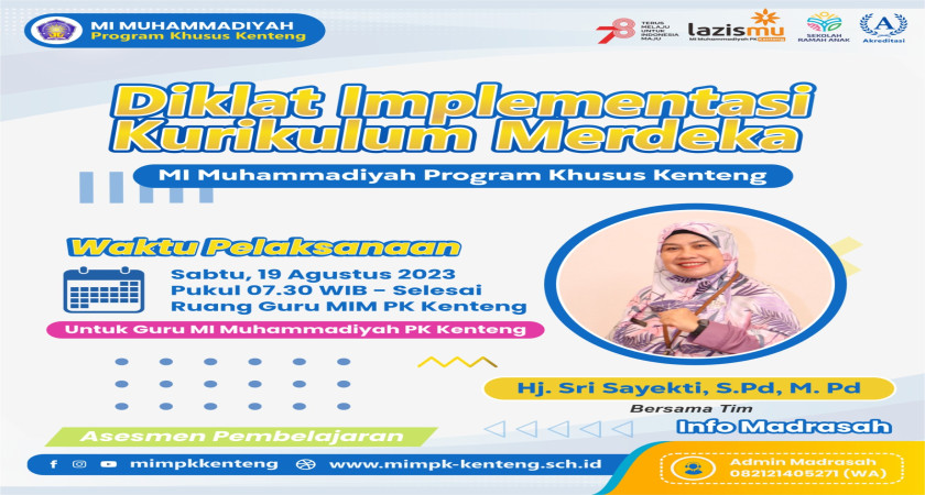 Boyolali- MIM PK Kenteng dalam meningkatkan kompetensi guru guna menghadapi Implementasi Kurikulum Merdeka Tahin 2023/2024 mengadakan Diklat IKM, Sabtu(19/8). Kegiatan ini diselenggarakan di Ruang Guru dimulai pukul 08.00 WIB - 15,00 WIB dan diikuti oleh seluruh guru serta karyawan MIM PK Kenteng.