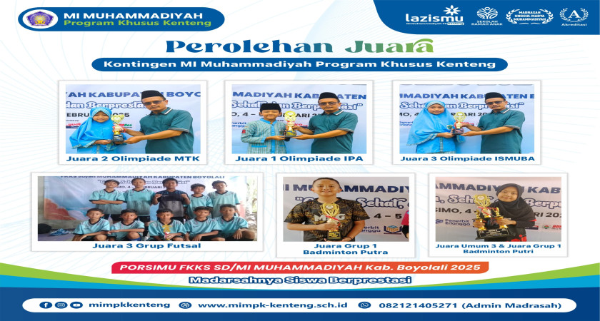Breaking News... Alhamdulillah dengan izin Allah SWT, MI Muhammmadiyah Program Khusus Kenteng meraih penghargaan sebagai Madrasah Unggul Madya dari Majelis Pendidikan Dasar dan P