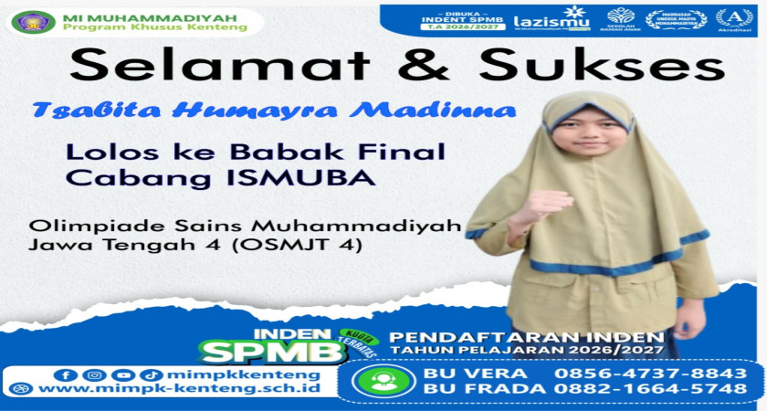 Selamat kepada ananda Tsabita kelas 6 Umar Bin Khattab, Lolos ke babak final OSMJT 4 Cabang ISMUBA.